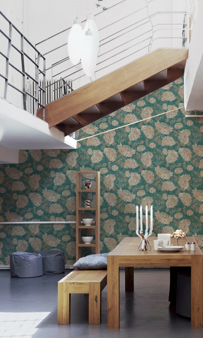 Vlies behang bloemen groen/goud 39025-4 A.s. Creation.