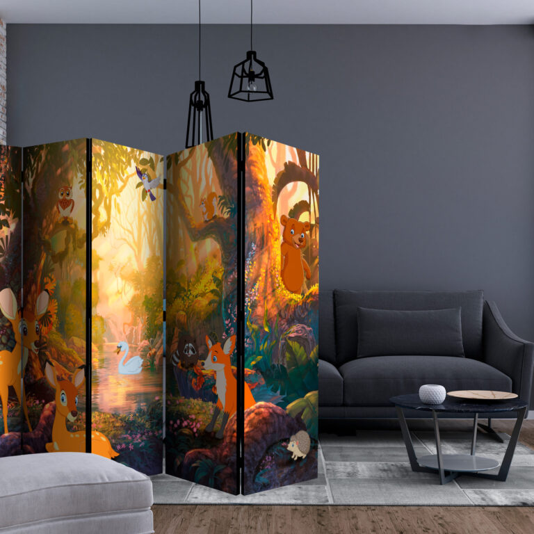 Het decoratieve vouwscherm “Animals in the Forest II [Room Dividers]” past uitzonderlijk mooi in een modern interieur. Het houten tweezijdig bedrukte vouwscherm geeft niet alleen een mooie opdeling van een ruimte maar geeft ook een fantastische flair aan uw interieur. De perfectie uitvoering en het originele motief in full HD uitvoering zorgen ervoor dat de kamervouwschermen iedere ruimte een originele charme verschaffen. Een prachtig kamervouwscherm is een zeer originele versiering en kan bijvoorbeeld prima worden toegepast in woningen of dienstruimten. (kapsalon, dokterskliniek, administratiekantoor etc)