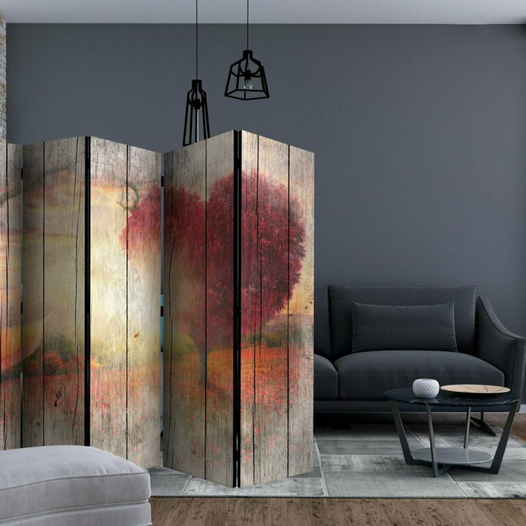 Het decoratieve vouwscherm “Autumnal Love II [Room Dividers]” past uitzonderlijk mooi in een modern interieur. Het houten tweezijdig bedrukte vouwscherm geeft niet alleen een mooie opdeling van een ruimte maar geeft ook een fantastische flair aan uw interieur. De perfectie uitvoering en het originele motief in full HD uitvoering zorgen ervoor dat de kamervouwschermen iedere ruimte een originele charme verschaffen. Een prachtig kamervouwscherm is een zeer originele versiering en kan bijvoorbeeld prima worden toegepast in woningen of dienstruimten. (kapsalon, dokterskliniek, administratiekantoor etc)
