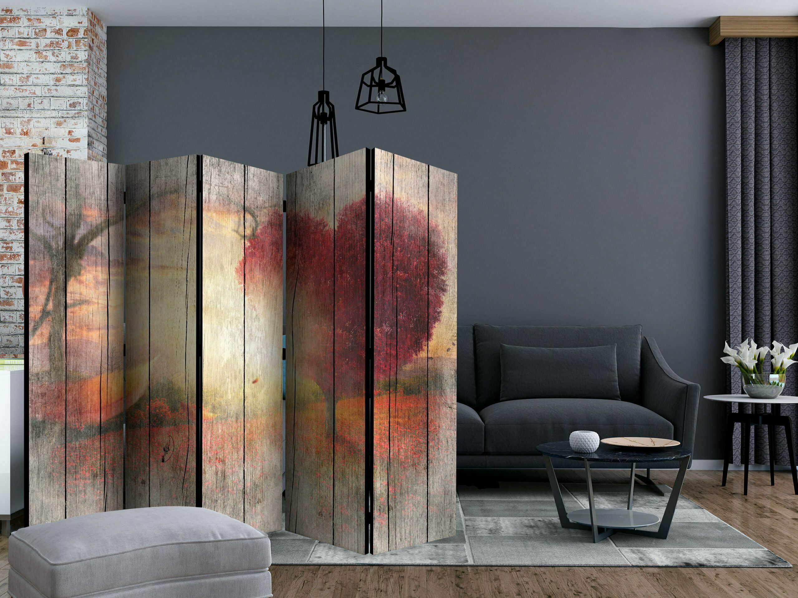 Het decoratieve vouwscherm “Autumnal Love II [Room Dividers]” past uitzonderlijk mooi in een modern interieur. Het houten tweezijdig bedrukte vouwscherm geeft niet alleen een mooie opdeling van een ruimte maar geeft ook een fantastische flair aan uw interieur. De perfectie uitvoering en het originele motief in full HD uitvoering zorgen ervoor dat de kamervouwschermen iedere ruimte een originele charme verschaffen. Een prachtig kamervouwscherm is een zeer originele versiering en kan bijvoorbeeld prima worden toegepast in woningen of dienstruimten. (kapsalon, dokterskliniek, administratiekantoor etc)