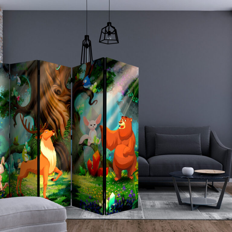 Het decoratieve vouwscherm “Bear and Friends II [Room Dividers]” past uitzonderlijk mooi in een modern interieur. Het houten tweezijdig bedrukte vouwscherm geeft niet alleen een mooie opdeling van een ruimte maar geeft ook een fantastische flair aan uw interieur. De perfectie uitvoering en het originele motief in full HD uitvoering zorgen ervoor dat de kamervouwschermen iedere ruimte een originele charme verschaffen. Een prachtig kamervouwscherm is een zeer originele versiering en kan bijvoorbeeld prima worden toegepast in woningen of dienstruimten. (kapsalon, dokterskliniek, administratiekantoor etc)