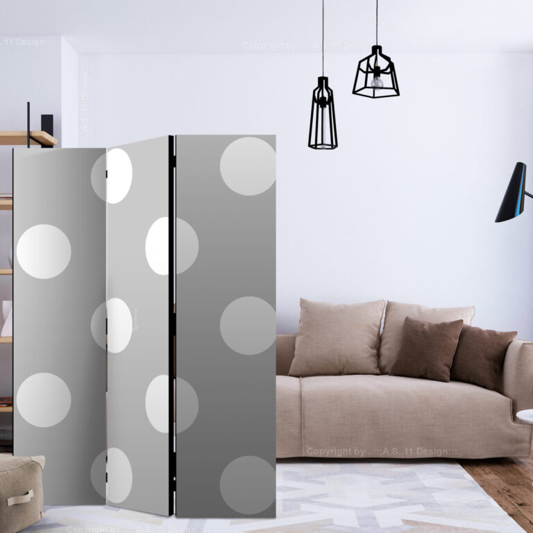 Het decoratieve vouwscherm “Charming Dots [Room Dividers]” past uitzonderlijk mooi in een modern interieur. Het houten driedelige en tweezijdig bedrukte vouwscherm geeft niet alleen een mooie opdeling van een ruimte maar geeft ook een fantastische flair aan uw interieur. De perfectie uitvoering en het originele motief in full HD uitvoering zorgen ervoor dat de kamervouwschermen iedere ruimte een originele charme verschaffen. Een prachtig kamervouwscherm is een zeer originele versiering en kan bijvoorbeeld prima worden toegepast in woningen of dienstruimten. (kapsalon, dokterskliniek, administratiekantoor etc)