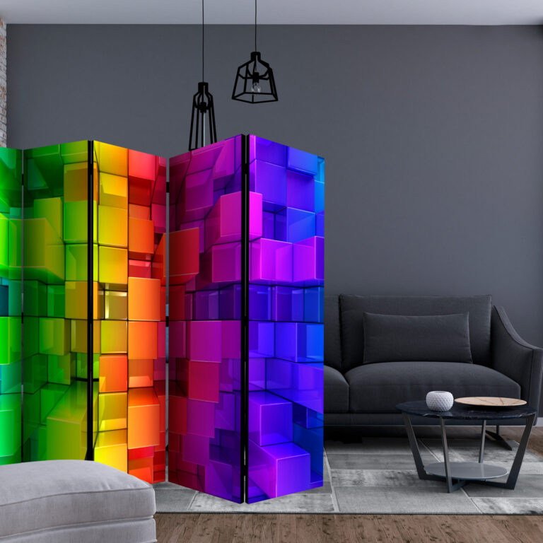 Het decoratieve vouwscherm “Colour jigsaw II [Room Dividers]” past uitzonderlijk mooi in een modern interieur. Het houten tweezijdig bedrukte vouwscherm geeft niet alleen een mooie opdeling van een ruimte maar geeft ook een fantastische flair aan uw interieur. De perfectie uitvoering en het originele motief in full HD uitvoering zorgen ervoor dat de kamervouwschermen iedere ruimte een originele charme verschaffen. Een prachtig kamervouwscherm is een zeer originele versiering en kan bijvoorbeeld prima worden toegepast in woningen of dienstruimten. (kapsalon, dokterskliniek, administratiekantoor etc)