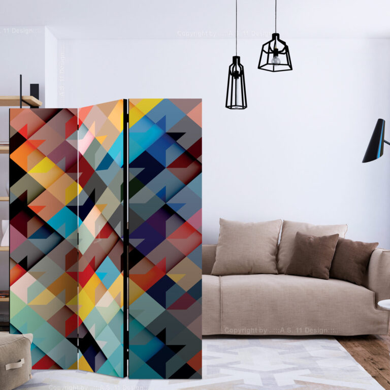 Het decoratieve vouwscherm “Colour Patchwork [Room Dividers]” past uitzonderlijk mooi in een modern interieur. Het houten driedelige en tweezijdig bedrukte vouwscherm geeft niet alleen een mooie opdeling van een ruimte maar geeft ook een fantastische flair aan uw interieur. De perfectie uitvoering en het originele motief in full HD uitvoering zorgen ervoor dat de kamervouwschermen iedere ruimte een originele charme verschaffen. Een prachtig kamervouwscherm is een zeer originele versiering en kan bijvoorbeeld prima worden toegepast in woningen of dienstruimten. (kapsalon, dokterskliniek, administratiekantoor etc)