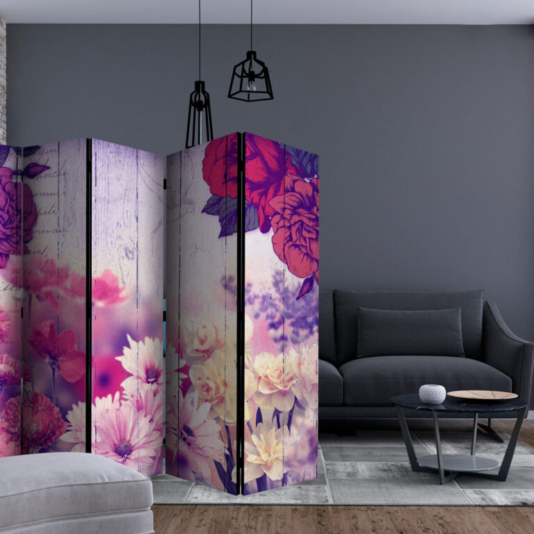 Het decoratieve vouwscherm “Flowers Memories II [Room Dividers]” past uitzonderlijk mooi in een modern interieur. Het houten tweezijdig bedrukte vouwscherm geeft niet alleen een mooie opdeling van een ruimte maar geeft ook een fantastische flair aan uw interieur. De perfectie uitvoering en het originele motief in full HD uitvoering zorgen ervoor dat de kamervouwschermen iedere ruimte een originele charme verschaffen. Een prachtig kamervouwscherm is een zeer originele versiering en kan bijvoorbeeld prima worden toegepast in woningen of dienstruimten. (kapsalon, dokterskliniek, administratiekantoor etc)