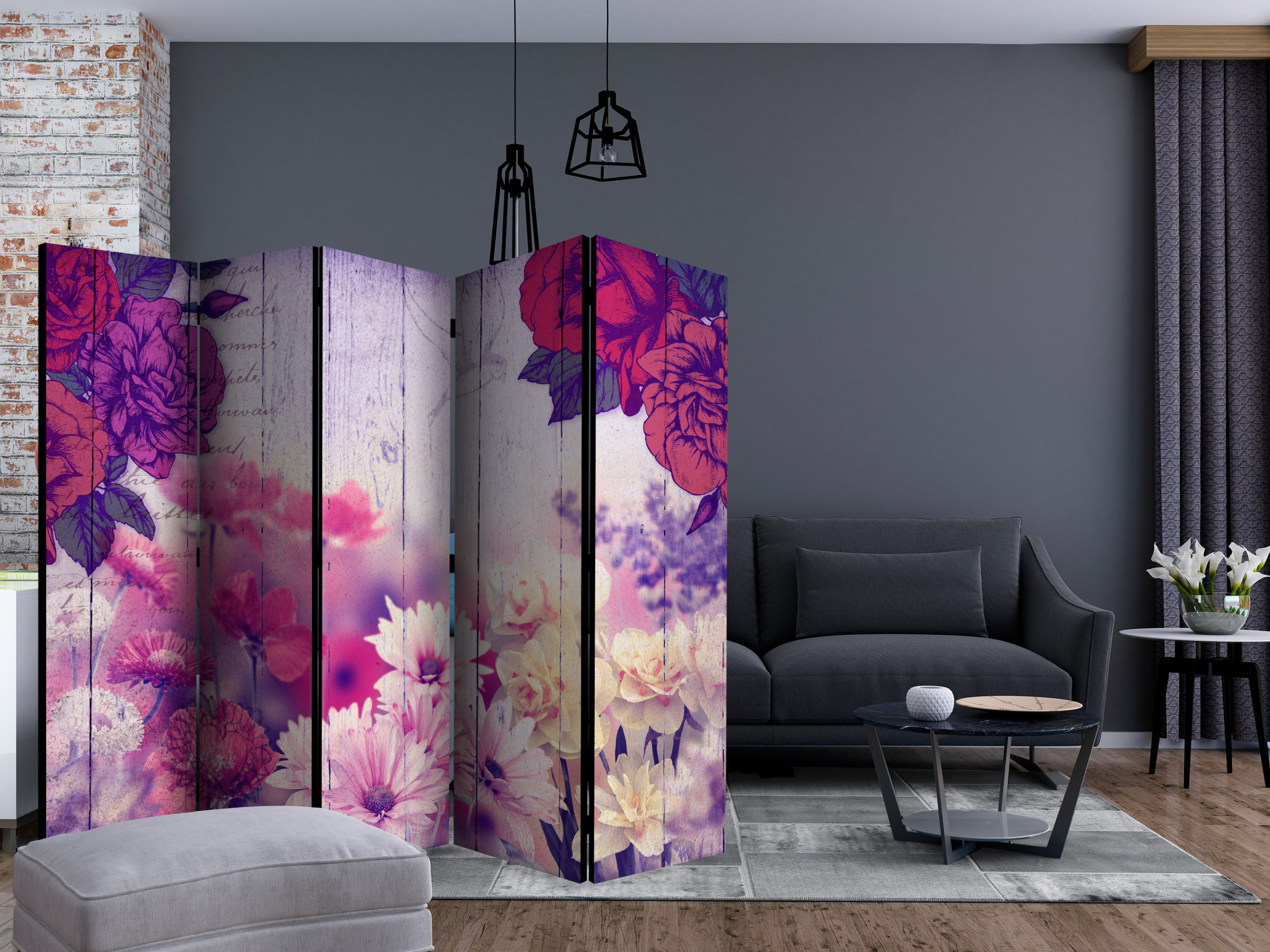 Het decoratieve vouwscherm “Flowers Memories II [Room Dividers]” past uitzonderlijk mooi in een modern interieur. Het houten tweezijdig bedrukte vouwscherm geeft niet alleen een mooie opdeling van een ruimte maar geeft ook een fantastische flair aan uw interieur. De perfectie uitvoering en het originele motief in full HD uitvoering zorgen ervoor dat de kamervouwschermen iedere ruimte een originele charme verschaffen. Een prachtig kamervouwscherm is een zeer originele versiering en kan bijvoorbeeld prima worden toegepast in woningen of dienstruimten. (kapsalon, dokterskliniek, administratiekantoor etc)