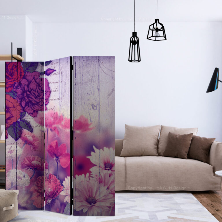 Het decoratieve vouwscherm “Flowers Memories [Room Dividers]” past uitzonderlijk mooi in een modern interieur. Het houten driedelige en tweezijdig bedrukte vouwscherm geeft niet alleen een mooie opdeling van een ruimte maar geeft ook een fantastische flair aan uw interieur. De perfectie uitvoering en het originele motief in full HD uitvoering zorgen ervoor dat de kamervouwschermen iedere ruimte een originele charme verschaffen. Een prachtig kamervouwscherm is een zeer originele versiering en kan bijvoorbeeld prima worden toegepast in woningen of dienstruimten. (kapsalon, dokterskliniek, administratiekantoor etc)