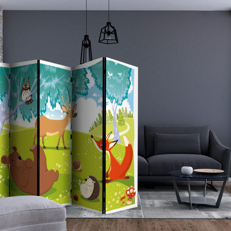 Het decoratieve vouwscherm “Funny animals II [Room Dividers]” past uitzonderlijk mooi in een modern interieur. Het houten tweezijdig bedrukte vouwscherm geeft niet alleen een mooie opdeling van een ruimte maar geeft ook een fantastische flair aan uw interieur. De perfectie uitvoering en het originele motief in full HD uitvoering zorgen ervoor dat de kamervouwschermen iedere ruimte een originele charme verschaffen. Een prachtig kamervouwscherm is een zeer originele versiering en kan bijvoorbeeld prima worden toegepast in woningen of dienstruimten. (kapsalon, dokterskliniek, administratiekantoor etc)