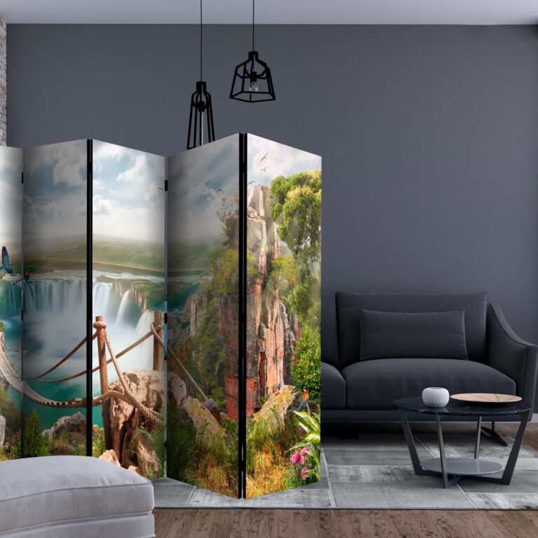 Het decoratieve vouwscherm “Hidden Paradise II [Room Dividers]” past uitzonderlijk mooi in een modern interieur. Het houten tweezijdig bedrukte vouwscherm geeft niet alleen een mooie opdeling van een ruimte maar geeft ook een fantastische flair aan uw interieur. De perfectie uitvoering en het originele motief in full HD uitvoering zorgen ervoor dat de kamervouwschermen iedere ruimte een originele charme verschaffen. Een prachtig kamervouwscherm is een zeer originele versiering en kan bijvoorbeeld prima worden toegepast in woningen of dienstruimten. (kapsalon, dokterskliniek, administratiekantoor etc)