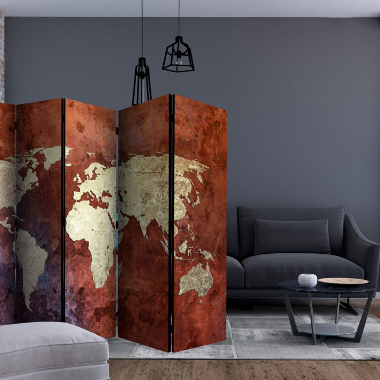 Het decoratieve vouwscherm “Iron continents II [Room Dividers]” past uitzonderlijk mooi in een modern interieur. Het houten tweezijdig bedrukte vouwscherm geeft niet alleen een mooie opdeling van een ruimte maar geeft ook een fantastische flair aan uw interieur. De perfectie uitvoering en het originele motief in full HD uitvoering zorgen ervoor dat de kamervouwschermen iedere ruimte een originele charme verschaffen. Een prachtig kamervouwscherm is een zeer originele versiering en kan bijvoorbeeld prima worden toegepast in woningen of dienstruimten. (kapsalon, dokterskliniek, administratiekantoor etc)