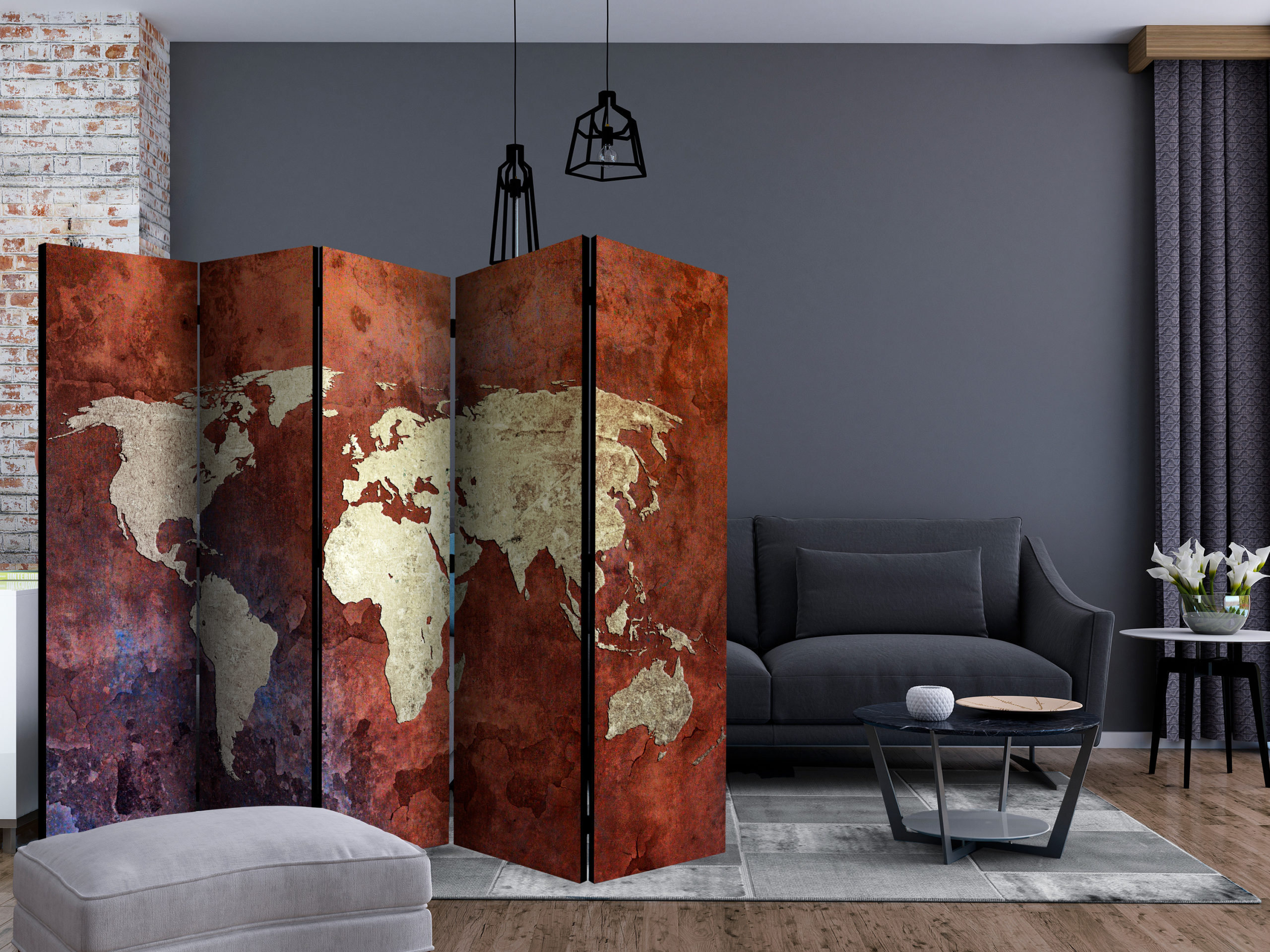 Het decoratieve vouwscherm “Iron continents II [Room Dividers]” past uitzonderlijk mooi in een modern interieur. Het houten tweezijdig bedrukte vouwscherm geeft niet alleen een mooie opdeling van een ruimte maar geeft ook een fantastische flair aan uw interieur. De perfectie uitvoering en het originele motief in full HD uitvoering zorgen ervoor dat de kamervouwschermen iedere ruimte een originele charme verschaffen. Een prachtig kamervouwscherm is een zeer originele versiering en kan bijvoorbeeld prima worden toegepast in woningen of dienstruimten. (kapsalon, dokterskliniek, administratiekantoor etc)