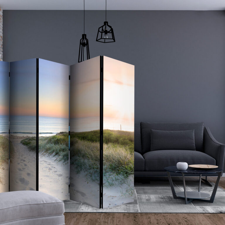 Het decoratieve vouwscherm “Morning walk on the beach II [Room Dividers]” past uitzonderlijk mooi in een modern interieur. Het houten tweezijdig bedrukte vouwscherm geeft niet alleen een mooie opdeling van een ruimte maar geeft ook een fantastische flair aan uw interieur. De perfectie uitvoering en het originele motief in full HD uitvoering zorgen ervoor dat de kamervouwschermen iedere ruimte een originele charme verschaffen. Een prachtig kamervouwscherm is een zeer originele versiering en kan bijvoorbeeld prima worden toegepast in woningen of dienstruimten. (kapsalon, dokterskliniek, administratiekantoor etc)