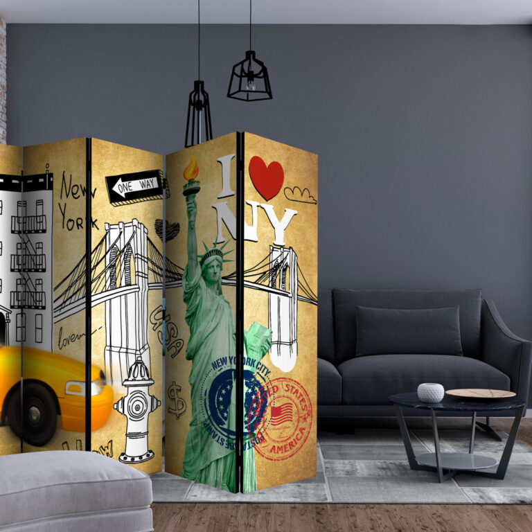 Het decoratieve vouwscherm “One way – New York II [Room Dividers]” past uitzonderlijk mooi in een modern interieur. Het houten tweezijdig bedrukte vouwscherm geeft niet alleen een mooie opdeling van een ruimte maar geeft ook een fantastische flair aan uw interieur. De perfectie uitvoering en het originele motief in full HD uitvoering zorgen ervoor dat de kamervouwschermen iedere ruimte een originele charme verschaffen. Een prachtig kamervouwscherm is een zeer originele versiering en kan bijvoorbeeld prima worden toegepast in woningen of dienstruimten. (kapsalon, dokterskliniek, administratiekantoor etc)