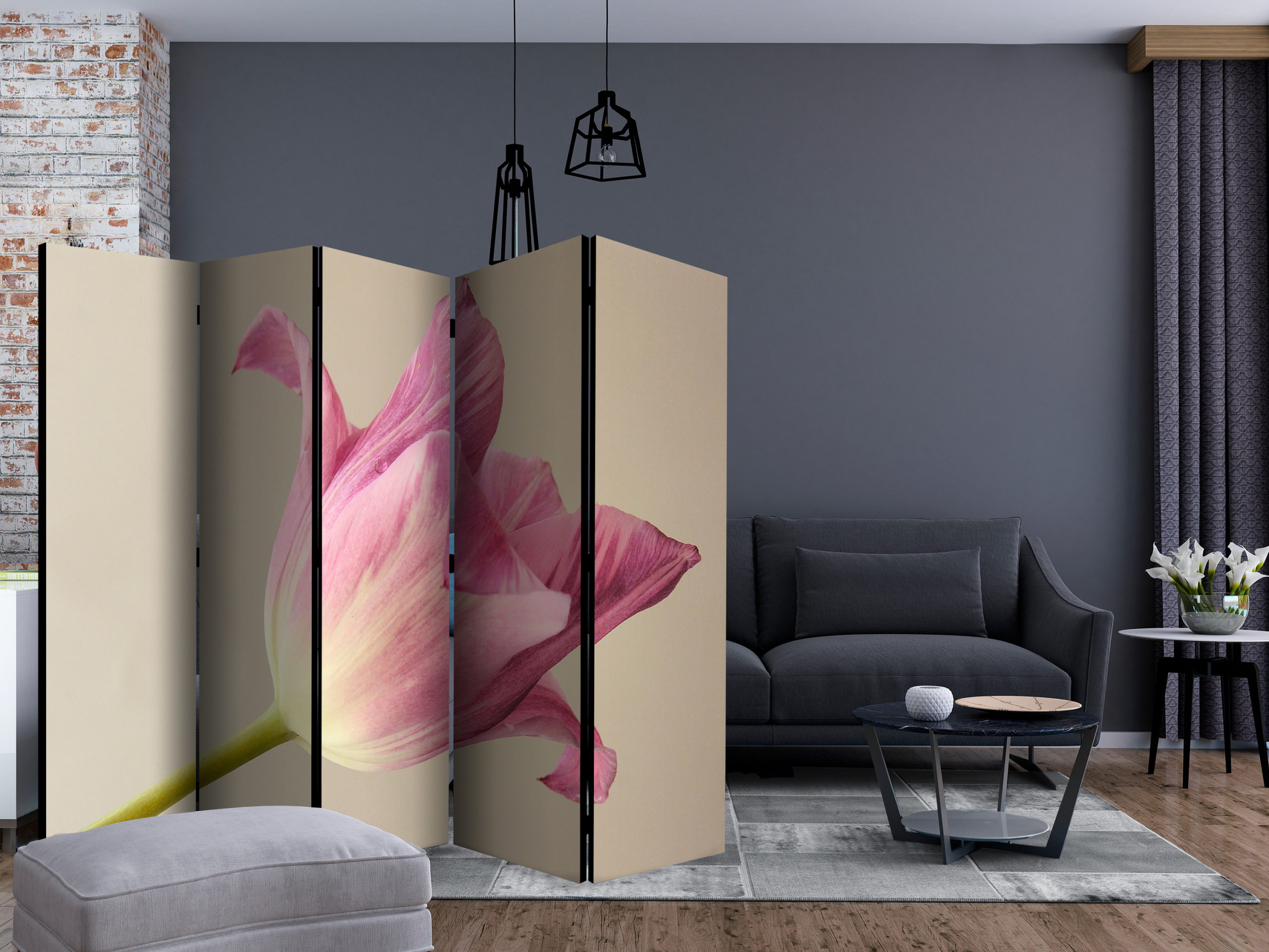 Het decoratieve vouwscherm “Pink tulip II [Room Dividers]” past uitzonderlijk mooi in een modern interieur. Het houten tweezijdig bedrukte vouwscherm geeft niet alleen een mooie opdeling van een ruimte maar geeft ook een fantastische flair aan uw interieur. De perfectie uitvoering en het originele motief in full HD uitvoering zorgen ervoor dat de kamervouwschermen iedere ruimte een originele charme verschaffen. Een prachtig kamervouwscherm is een zeer originele versiering en kan bijvoorbeeld prima worden toegepast in woningen of dienstruimten. (kapsalon, dokterskliniek, administratiekantoor etc)