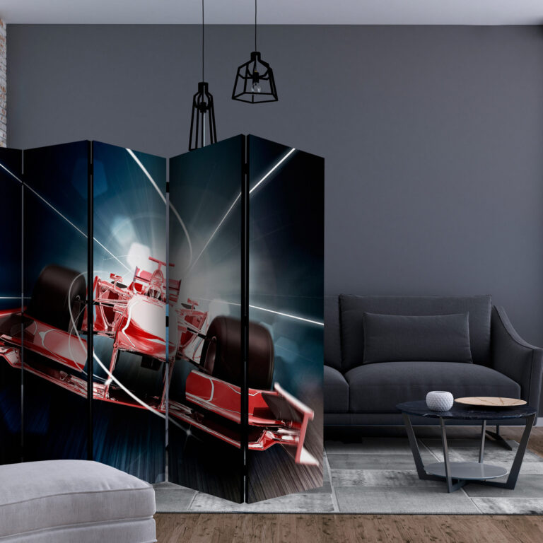 Het decoratieve vouwscherm “Speed and dynamics of Formula 1 II [Room Dividers]” past uitzonderlijk mooi in een modern interieur. Het houten tweezijdig bedrukte vouwscherm geeft niet alleen een mooie opdeling van een ruimte maar geeft ook een fantastische flair aan uw interieur. De perfectie uitvoering en het originele motief in full HD uitvoering zorgen ervoor dat de kamervouwschermen iedere ruimte een originele charme verschaffen. Een prachtig kamervouwscherm is een zeer originele versiering en kan bijvoorbeeld prima worden toegepast in woningen of dienstruimten. (kapsalon, dokterskliniek, administratiekantoor etc)